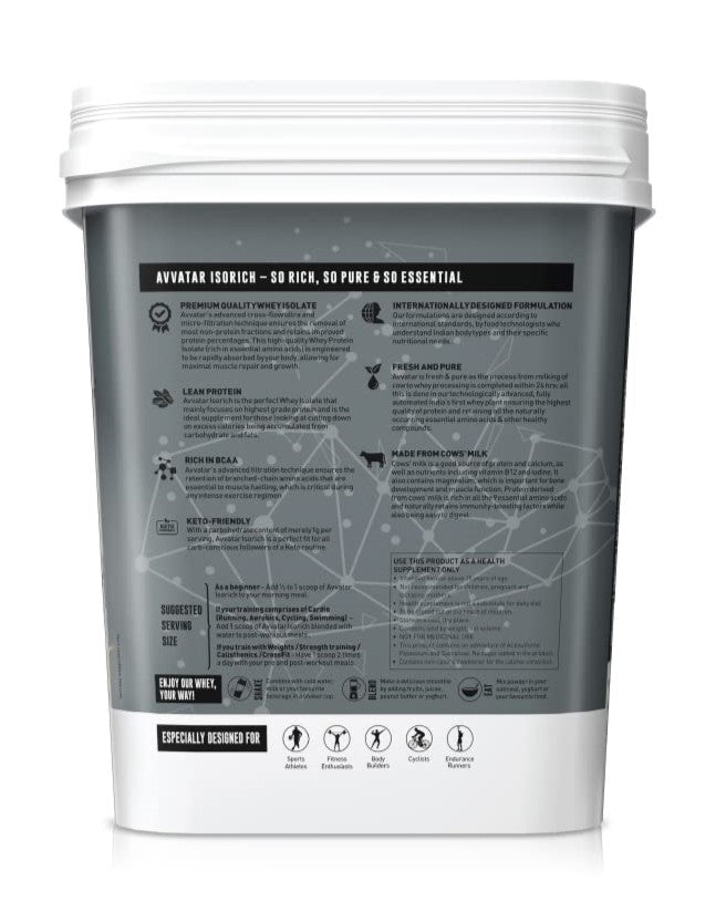Freshest and purest premium 100% Whey Protein Isolate that gets rapidly absorbed in your digestive tract allowing quick delivery of protein.Delivering 28g protein per scoop – one of the highest in the category along with naturally occurring BCAAs and EAAs that supports in muscle protein synthesis.Milked, processed and packed within 24 hrs to ensure freshest protein with valuable biological properties retained. Made from fresh cow’s milk.Ideal for people who want to stay low on carbohydrates while replenishing high protein need. Best suited for people who are lactose intolerant.