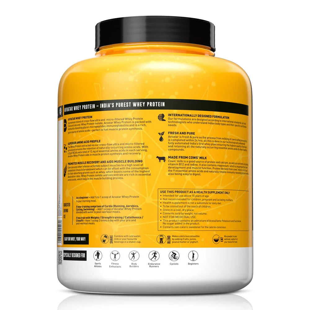 Avvatar Whey Protein is packed with Protein, Glutamic Acid, BCAA & Other EAAS. The primary source is whey protein concentrate which is loaded with health-boosting bioactive compounds along with natural phospholipids for quick recovery and sustained results.