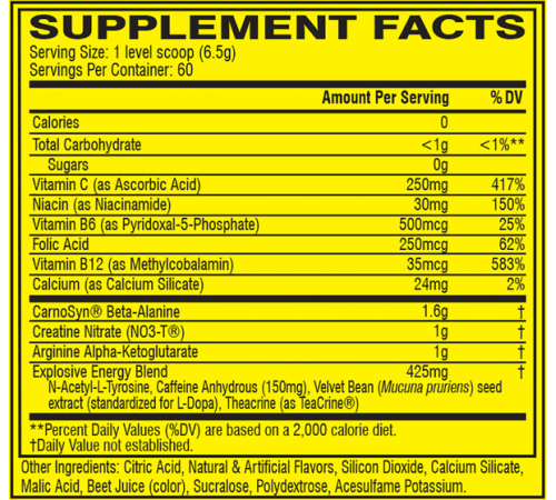 C4 is the next level of innovation and refinement. Its formula is now more dialled in, more potent and includes the breakthrough ingredient, teacor for improved energy that comes on quickly and lasts longer. Beta alanine an amino acid that supports muscular endurance. Beta alanine produces a tingly sensation throughout the body that lets you know it's working. Creatine nitrate creatine bound to nitrate. Creatine nitrate produces two desirable effects on performance creatine for strength and nitrate for pumps. Acetyl l tyrosine it is a core part of the essential energy blend. It helps support peak mental and physical performance. Caffeine a popular and proven source for energy.