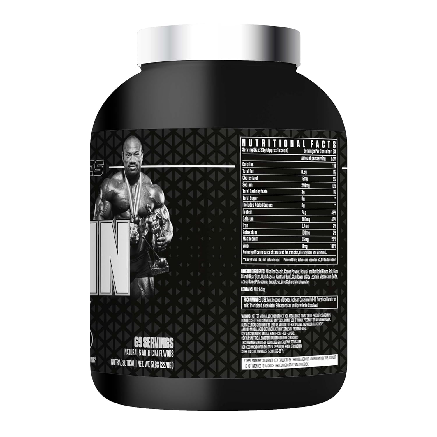 Chocolate Supreme Dexter Jackson Black Series Casein Protein | 5 pounds (2272g) | 69 Servings Dexter Jackson Black Series Casein Protein, a slow-digesting protein combination designed for overnight recovery, lean muscle maintenance, and consistent amino acid delivery, will help you fuel your muscles even while you sleep. High-quality casein protein is included in every meal to promote sustained absorption and assist avoid muscle breakdown during prolonged fasting. This protein powder is crucial for bodybuilders and athletes who want to optimize muscle growth and recovery, and it is perfect for use at night or in between meals. The rich, smooth taste of the Chocolate Supreme flavor makes your late-night smoothie both gratifying and healthy. If you want to maintain lean muscle throughout a cut or are far into your bulking phase, this slow-release protein blend from the Dexter Jackson Black Series ensures your muscles are supported 24/7.