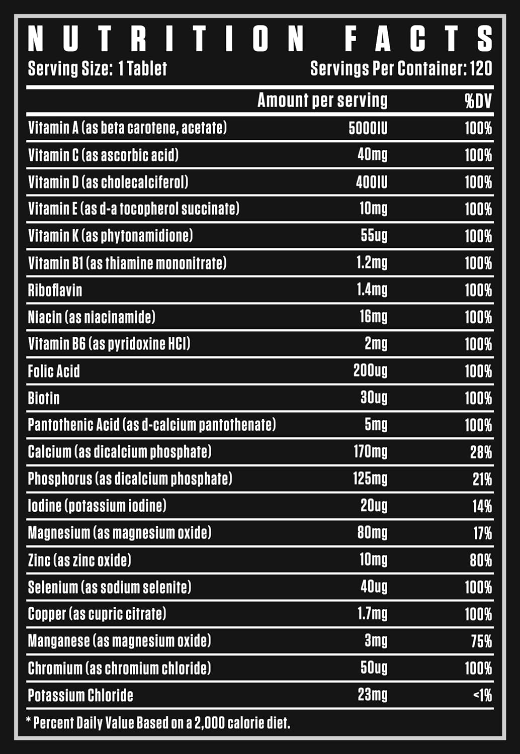 Dexter Jackson Black Series Multivitamin – 120 Tablets can boost your health, compensate for poor eating habits, and even lower your risk of chronic disease. Multivitamins can supply nutrients to your body, allowing it to function physically optimally during daily activities. This unique vitamin aids in the conversion of nutrients into energy and the recovery of muscles. If your diet does not meet your nutritional needs, your performance will suffer and you may not be able to maximize your training gains. Taking a multivitamin daily will prevent this from happening. Multivitamin supplements are essential for energy production, hemoglobin synthesis, bone health, immune function, and protecting the body from oxidative damage. They aid in the synthesis and repair of muscle tissue during exercise and injury recovery.