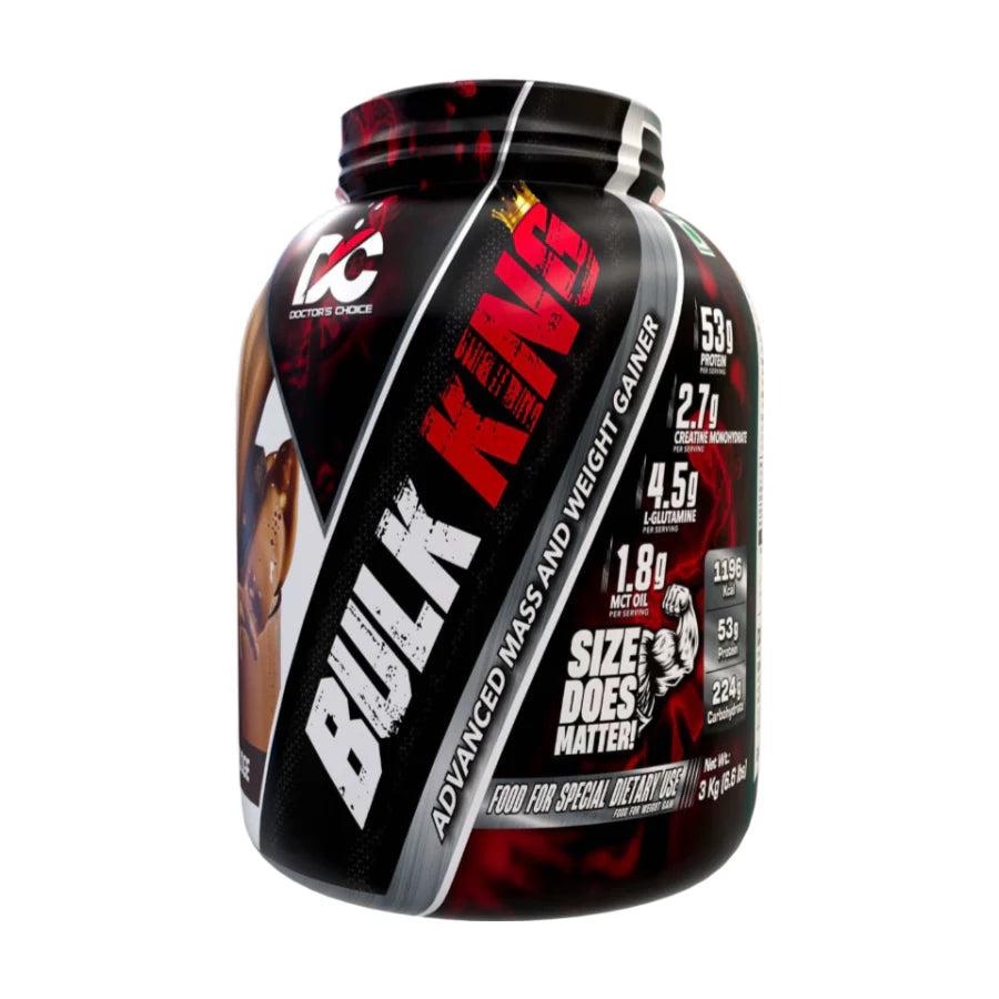 More protein and more calories are required to develop those gigantic shoulders and biceps. People wanting to gain weight do not receive enough nutrients just from food alone and thus have a tough time to achieve the desired body. BULKING is one of the finest gainers launched by Doctor's Choice specifically for those who experience difficulties to gain weight and bulk up quickly. It provides 1244 kcal energy 60 g of protein and 250g of carbs when mixed with 900ml- l L of water and will keep you satiated. It contains MCT Oil, which increases appetite and makes it simpler to consume the additional calories required to gain weight quickly. Bulking can be consumed as a Post workout meal as it is a high-calorie bodybuilding shake with adequate amount of carbohydrates, high quality muscle building protein, creatine, and glutamine to accelerate your muscle growth.