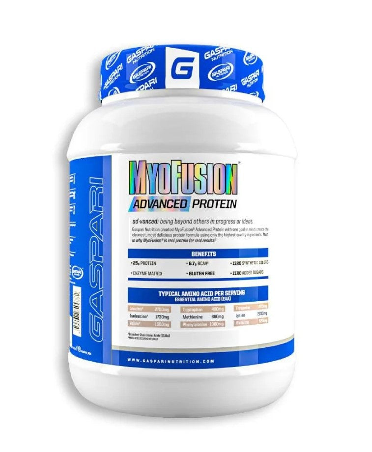 Myofusion® Advanced Protein exemplifies Gaspari’s never-ending commitment to providing the highest quality and purity tested protein powder to the masses. Specifically formulated to be not only the most delicious lean protein powder available but also the most effective. MYOFUSION® is the final culmination of years of scientific research. Just about everyone knows that if you want to increase your lean muscle tissue and spark new fat loss, the most effective way to do so is to increase how much protein you ingest each day. The problem, however, is that not all protein is created equally! While the average protein powder on the market gives you one or two different forms of protein, only MYOFUSION® Advanced Protein provides you with a clinically validated blend of the 5 most effective protein sources known to man.*