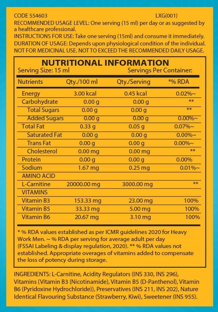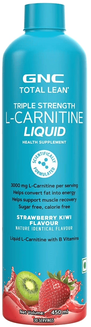 Want to build the perfect physique with more lean muscles and very less fat? Introducing GNC Total Lean Triple Strength L-Carnitine Liquid! Its triple-strength formula delivers 3000mg of L-Carnitine in a single serving for an incredible potency boost. Plus, its liquid form gets absorbed easily as compared to the tablet ones for quicker results. GNC’s Liquid L-Carnitine demonstrates an extremely useful ability of generating energy from the stored fats in body. This energy provides ample fuel to level up your workout performance for faster bodybuilding success. In addition to L-Carnitine, the formula also contains added Vitamin B3, B5 & B6 at 100% RDA capacity for converting the eaten food into energy, which generates more fuel for use. In the process of metabolizing bad fats for energy, this Liquid L-Carnitine delivers healthy weight-loss results by acting as a strong fat burner while leaving out your lean muscles to grow further. The strategic fat-burning & muscle-growing equation eventually gives you the perfect gym body. The L-Carnitine Liquid drives more oxygen flow towards your muscles by improving the blood supply. This promotes faster muscle recovery and growth. It also increases the antioxidant activity to shield your lean muscles from tissue damage, which in turn prevents soreness and muscle fatigue. The formula gives a massive Nitric Oxide boost that increases blood circulation. This increased circulation improves muscle strength and stamina for letting you train tirelessly for longer. L-Carnitine shoots up your athletic capabilities by delaying exhaustion and pumping up endurance. GNC’s Liquid L-Carnitine hits awesome in the taste department too. It presents some amazing fruity flavours that your taste buds will love. All this flavourful experience comes at the cost of ZERO guilt as the formula has ZERO sugar, carbs, and calories.