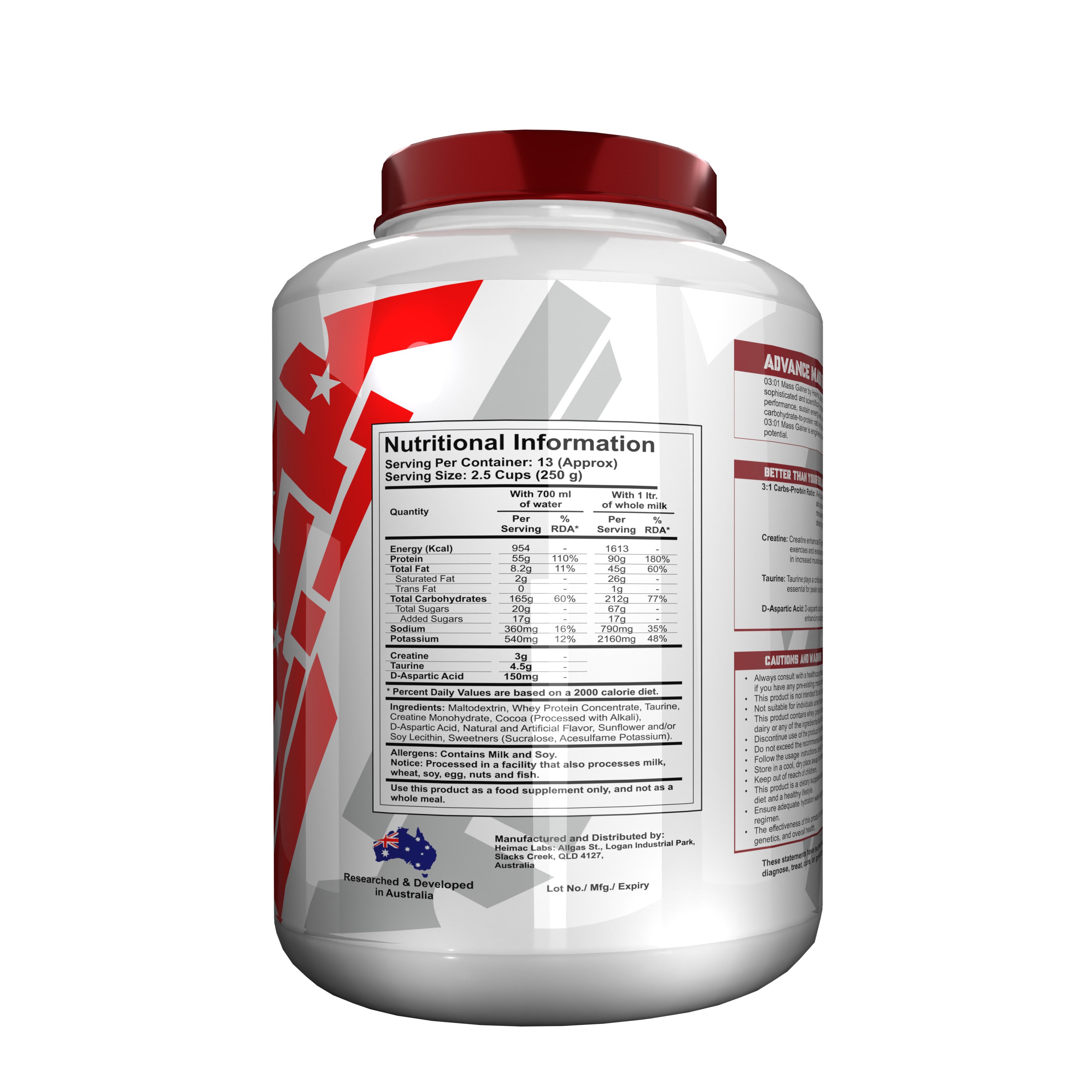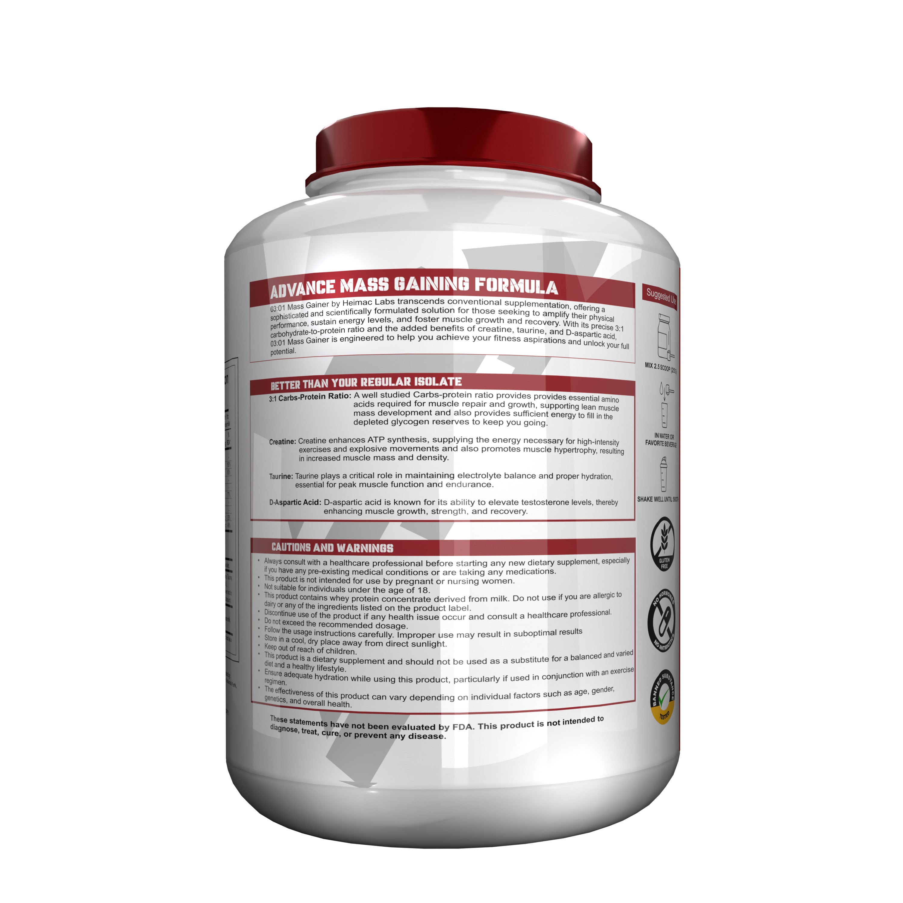 Our Advance Mass Gaining Formula is designed to go beyond regular isolates by delivering a powerful blend of nutrients optimized for muscle growth, strength, and recovery. With a carefully researched 3:1 carbs-to-protein ratio and enhanced with Creatine, Taurine, and D-Aspartic Acid, this advanced formula provides everything your body needs to develop lean muscle mass, improve endurance, and boost testosterone levels for peak performance.