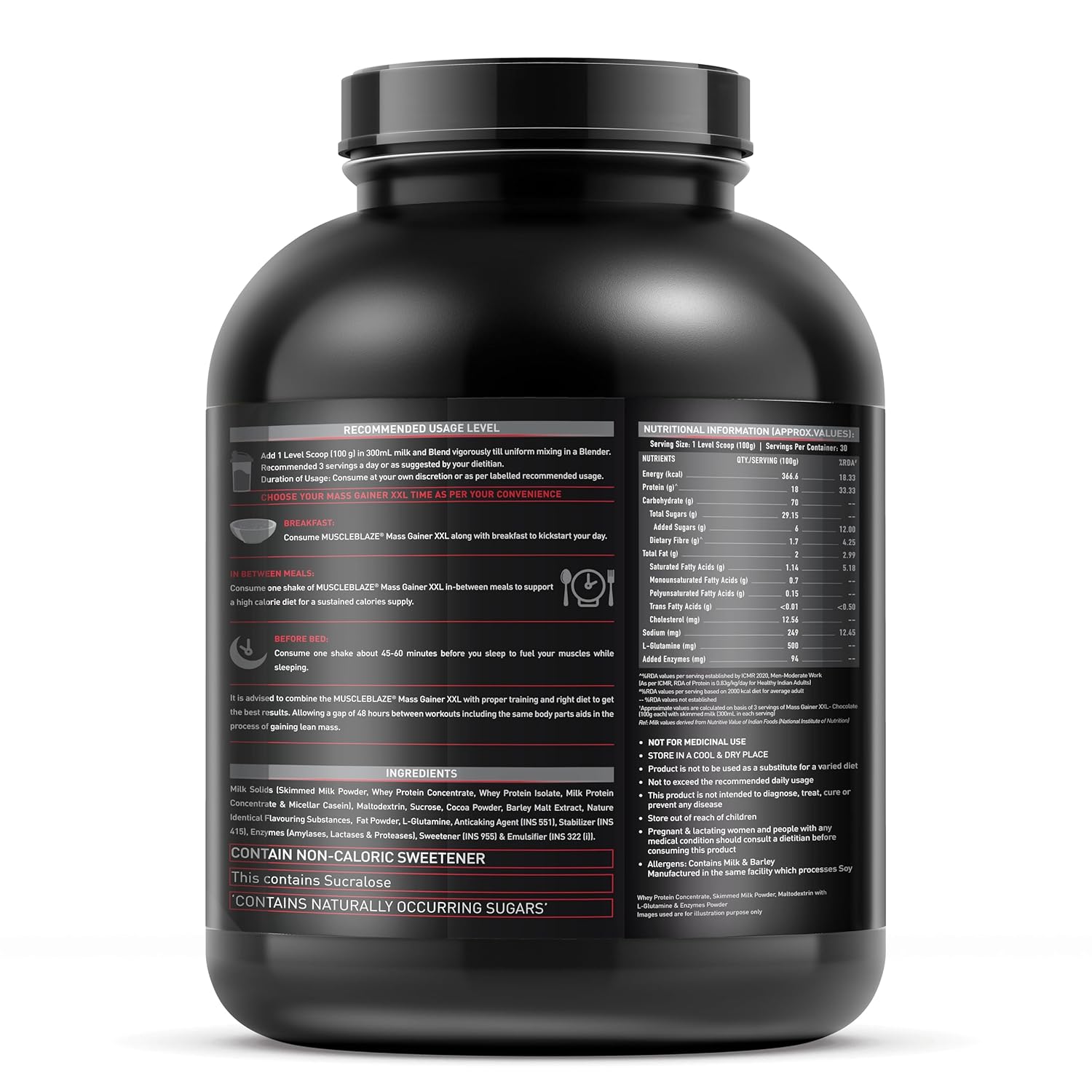 Fuel Massive Gains : MuscleBlaze Mass Gainer XXL, a reformulated mass gain formula with a high-protein blend and complex carbs, enhanced with digestive enzymes for serious bodybuilders.
