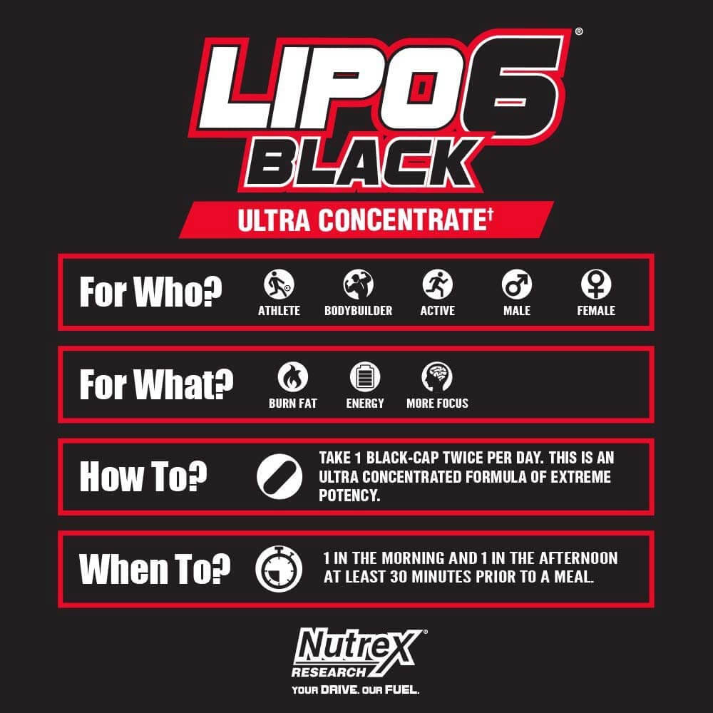 Lipo6 Black Ultra-Concentrate delivers a concentrated blend of carefully chosen ingredients to supercharge your fat loss efforts. If you're looking to shed excess weight and reveal a leaner, more defined physique, Lipo6 Ultra-Concentrate is your trusted ally.