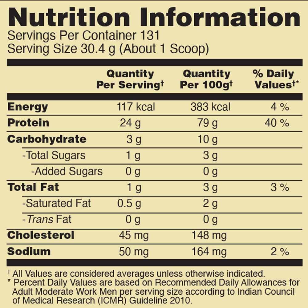 - 24 grams of whey protein per serving with whey protein isolates as the primary ingredient and just 1 gram of sugar and 1 gram of fat