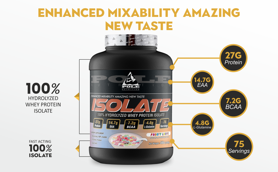 . Pole Isolate 100% Hydrolyzed whey provides 27g protein per serving