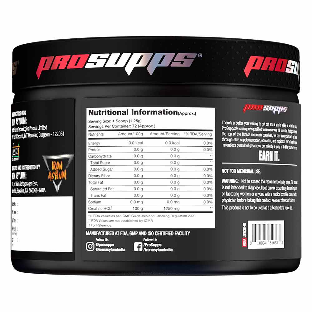 ProSupps Creatine HCL features 2,000mg of 100% pure Creatine Hydrochloride per scoop. Creatine is one of the most popular supplements on the market today and is known to help increase power, strength, and muscle mass.