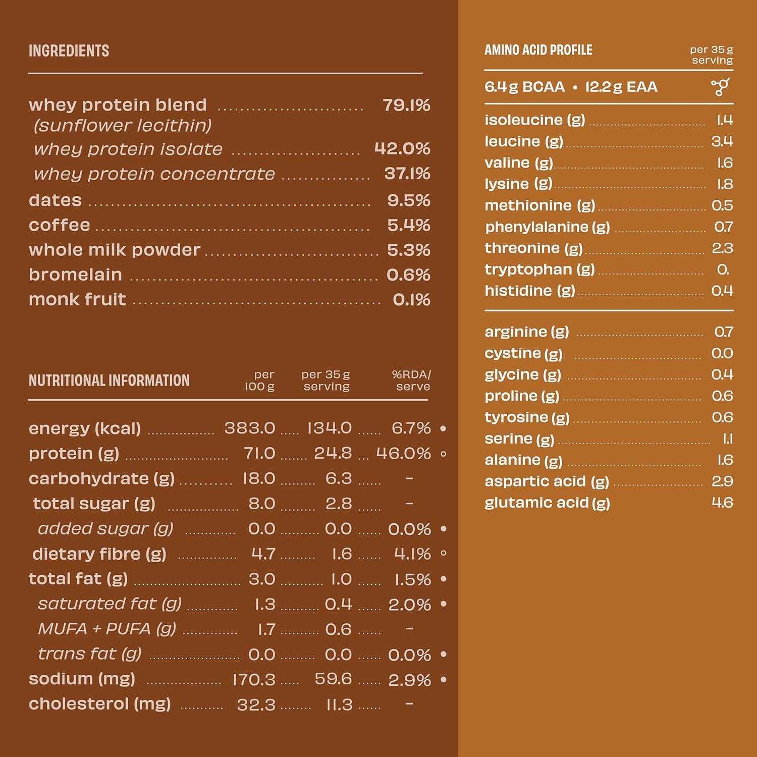 More importantly, made without any added flavours, artificial sweeteners, preservatives, gums, thickeners, anti-caking agents, anti-foaming agents, amino-spiking agents, heavy metal contamination, adulterants or doping agents of any kind whatsoever. Phew!