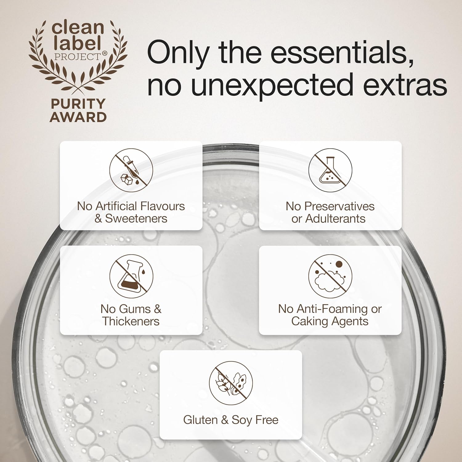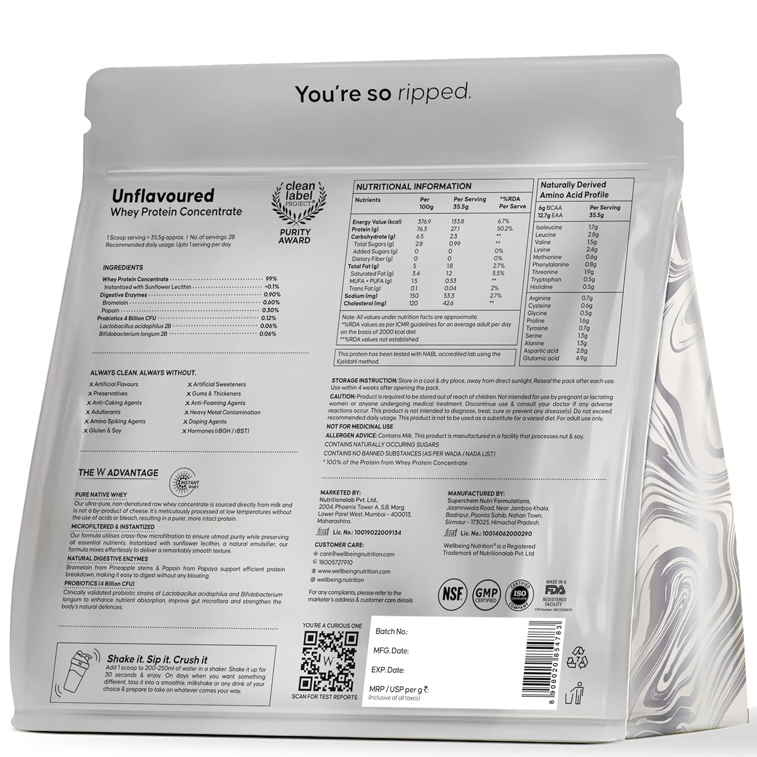 Introducing India’s first Whey protein concentrate formulated to improve muscle strength & endurance. Our ultra-pure, non-denatured Whey protein delivers 27.1g protein, 12.7g EAA, and 6g BCAA, with 4 Billion CFU of probiotics & digestive enzymes for a gut-friendly dose of goodness without any bloating. Our truly unflavoured formula is instantized for a smooth, light texture—perfect for fueling workouts, recovery, and daily nutrition.